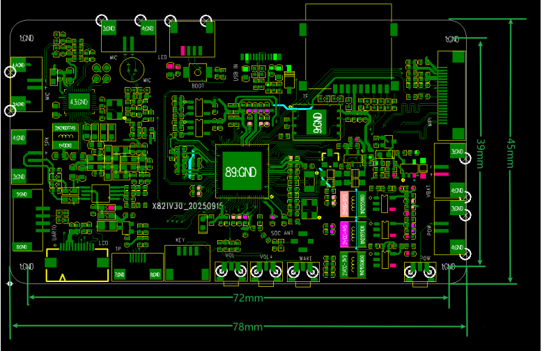 全志v821芯片在性能、成本、功耗和生态之间取得了极佳的平衡,被认为是开发AI玩具的“黄金选择”或“最合适”的芯片之一。在性能上他远远超越了AI玩具友商方案,在开发过程中不仅不会遇到性能瓶颈,而且还可以支持摄像头功能,使产品功能更加丰富。另外,GPIO口也足够的多,可以驱动双屏、摄像头、马达、红外、音频、串口等多种外设毫无压力。CPU主频也比同类产品要高出一大截,最关键的是CPU价格和友商不相上下,还自带了WIFI蓝牙,更厉害的是九鼎即将推出支持双频WIFI V821B主板,妥妥的击中了用户的痛点。